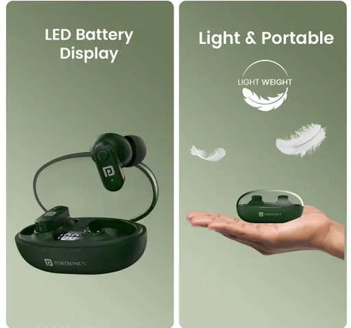 Name : Portronics Harmonics Twins S16 In Ear Wireless TWS Earbuds with 24 Hrs Playtime, Clear Calls, Game & Music Mode, Low Latency, Bluetooth 5.3v, LED Display, Type C Fast Charging(Military Green)